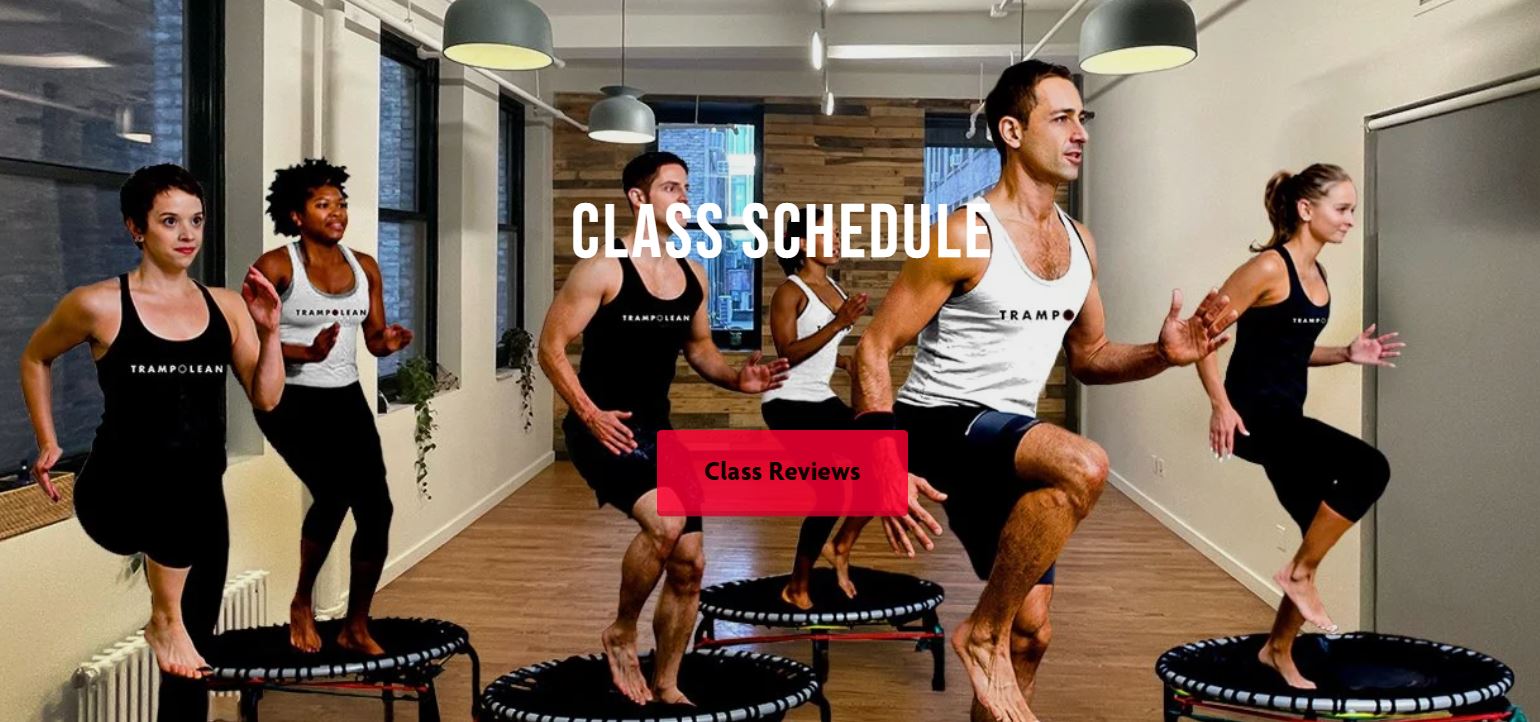 | TrampoLEAN® | 129 W 29th St, 2nd Floor, New York, NY 10001 | Mini-trampoline / rebounder fitness: classes combining cardio, strength, mobility on trampolines. | Various class times (check website/bookings) — e.g., classes suited for all levels. | Pricing not fully public in source; bookings via site. | Positive reviews: described as fun, low-impact yet high energy; good for all fitness levels. | Website: trampolean.nyc Phone: (212) 956-4326 |